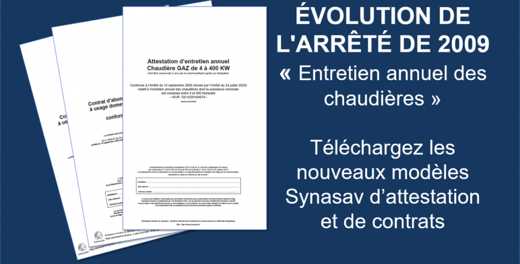 L’Arrêté du 15 septembre 2009 (dans sa version du 30/11/2020 résultant des modifications apportées par l’Arrêté du 24 juillet 2020) impose de nouveaux contrôles à réaliser lors de l’entretien de la chaudière et, de produire un nouveau modèle d'Attestation d’entretien.
