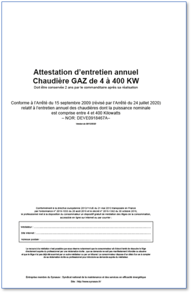 ATTESTATION D'ENTRETIEN GAZ - NOUVEAU MODELE SYNASAV