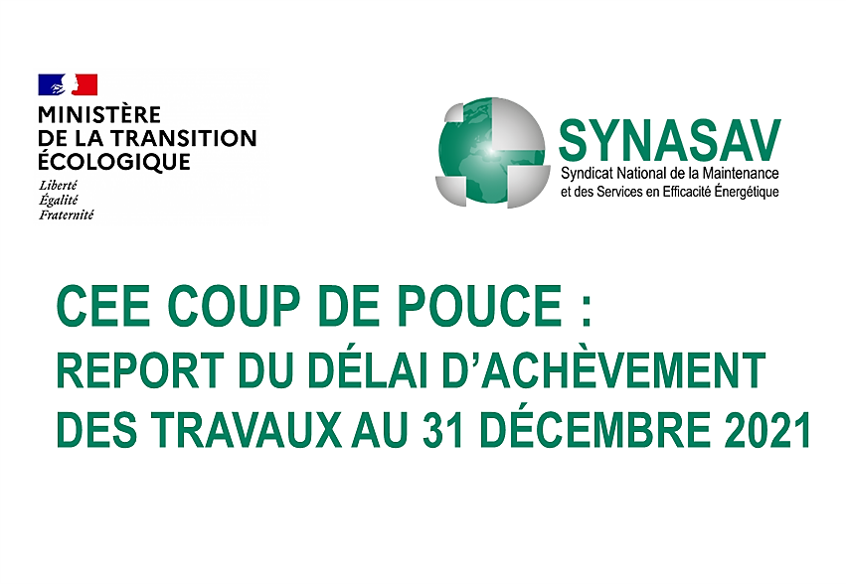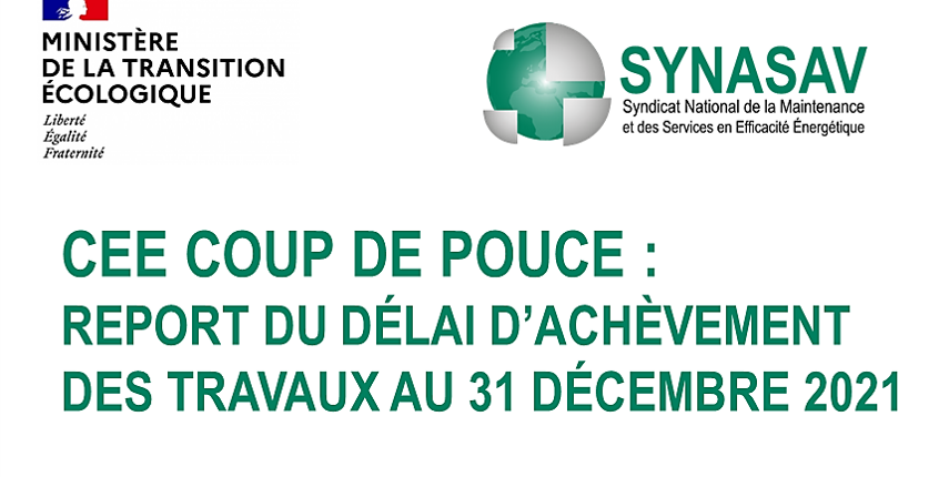CEE COUP DE POUCE, OBTENTION DU REPORT DU DÉLAI D’ACHÈVEMENT DES TRAVAUX AU 31 DECEMBRE 2021