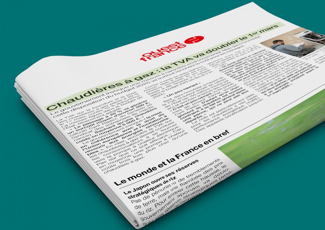 Chaudières à gaz : La TVA double à partir du 1er mars, le Synasav explique dans le quotidien Ouest-France