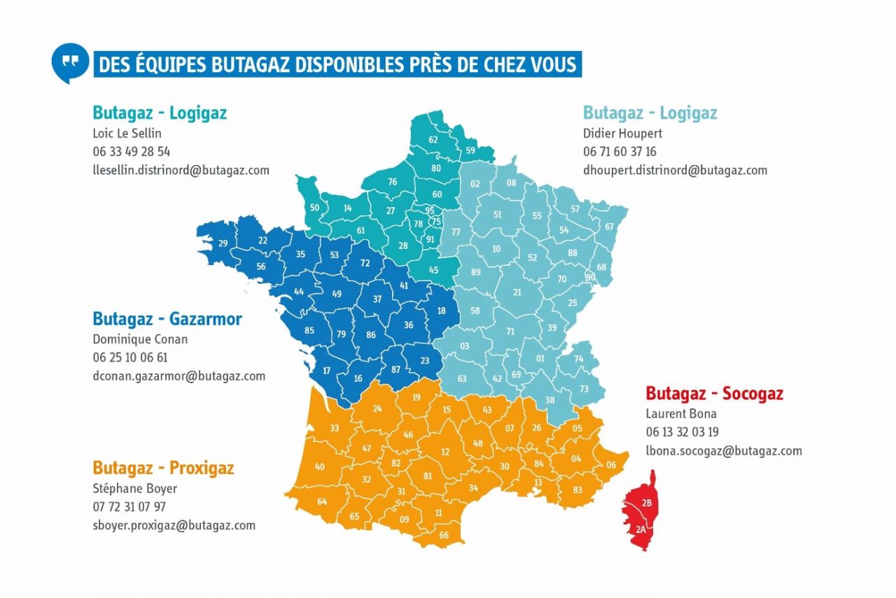 - Butagaz vous met également en contact avec ses équipes partout en France pour répondre à vos interrogations. L’idée est de renforcer ce sentiment de proximité sur un partenariat national.