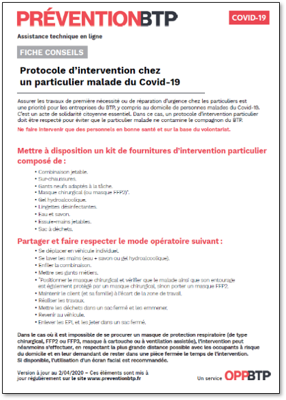 - Protocole d’intervention chez un particulier malade du Covid-19