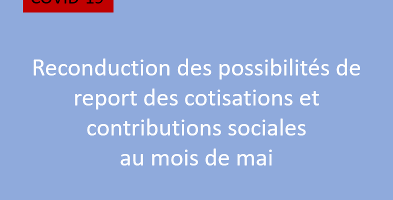 Covid-19 - Reconduction des possibilités de report des cotisations et contributions sociales au mois de mai