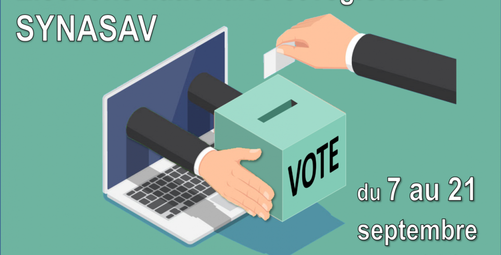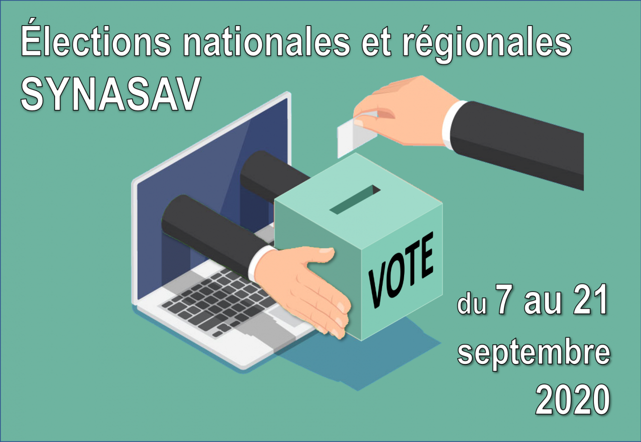 Du 7 au 21 septembre 2020, les adhérents SYNASAV vont procéder au renouvellement des instances nationales et régionales du syndicat. Le Bureau exécutif national + les Présidents régionaux formeront le Conseil d'administration. Proclamation des résultats à l'Assemblée générale du SYNASAV le vendredi 25 septembre.