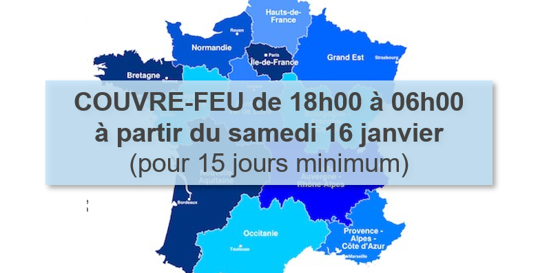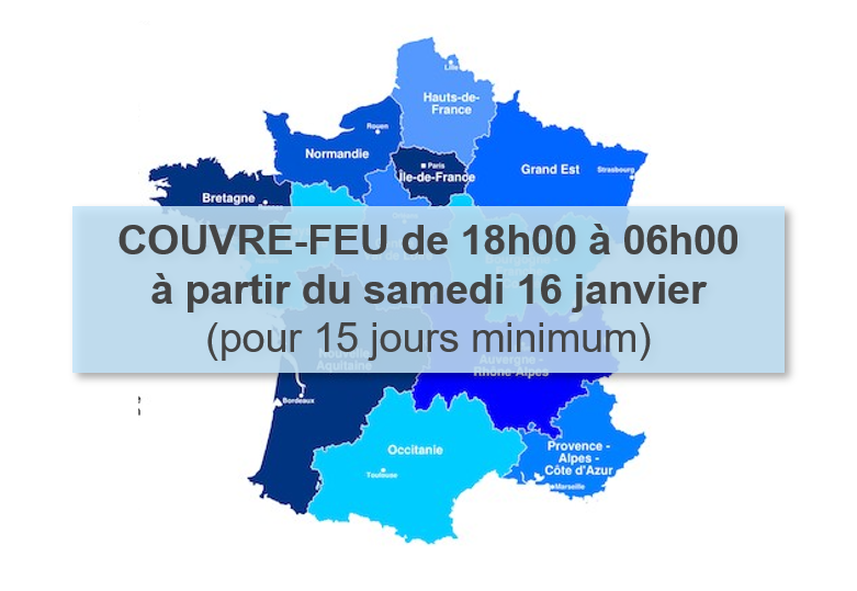 Le Premier ministre a annoncé jeudi que l'ensemble des départements seraient soumis au couvre-feu de 18h00 à 06h00 du matin à partir du samedi 16 janvier et pour une durée d'au moins 15 jours.