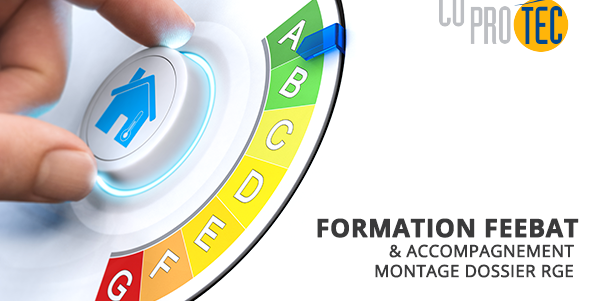 Le montage du dossier RGE est l'étape qui suit la formation Feebat pour toute entreprise souhaitant obtenir la qualification RGE. COPROTEC propose un service d'accompagnement à distance pour les professionnels souhaitant être épaulés pour monter leur dossier de qualification RGE.