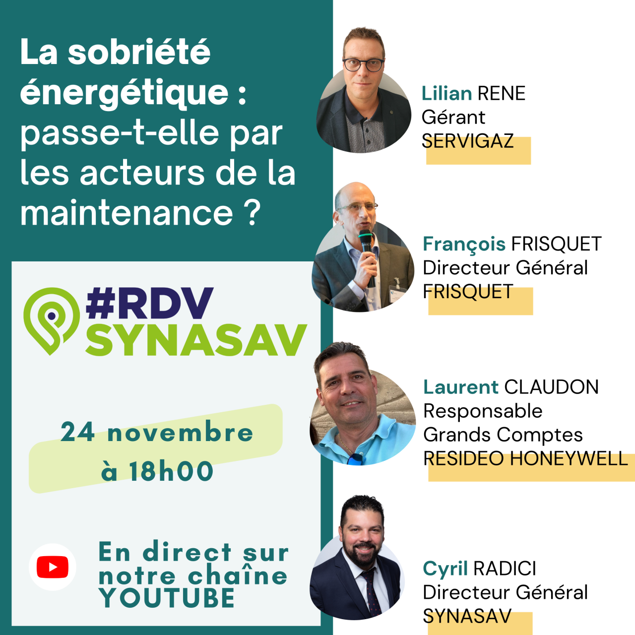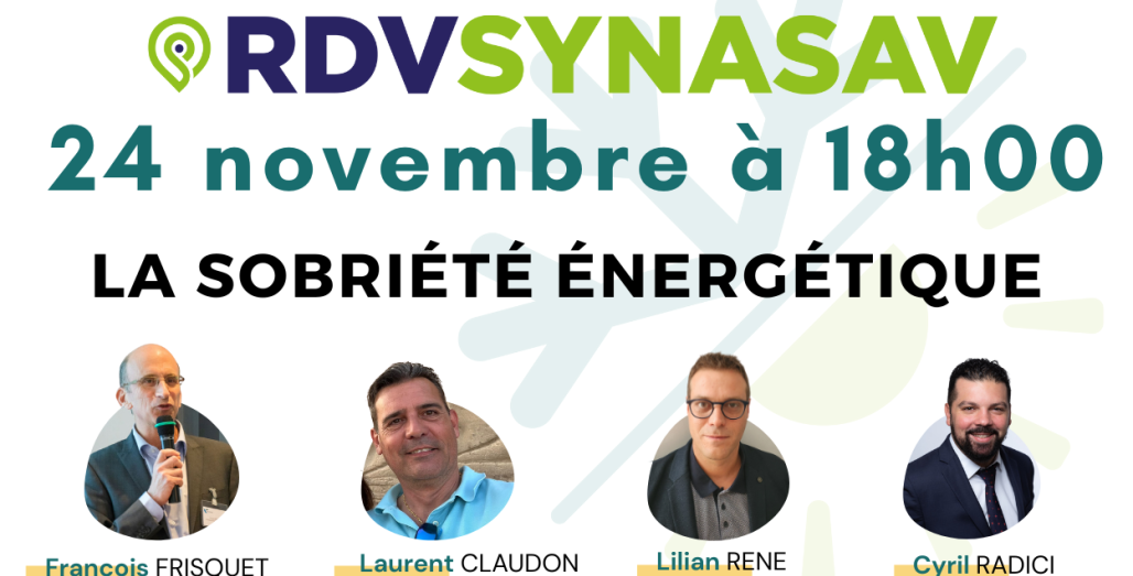 JEUDI 24 NOVEMBRE À 18H en direct sur notre chaine YouTube, les experts du SYNASAV vous donnent rendez-vous pour une émission consacrée à la sobriété énergétique.