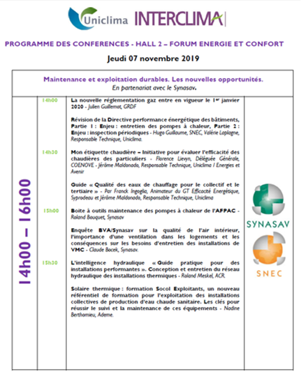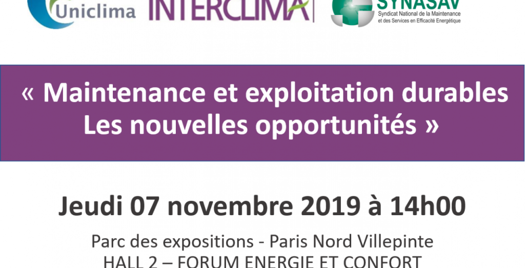Maintenance et exploitation durables : les nouvelles opportunités - Conférence UNICLIMA / SYNASAV le 07 novembre sur INTERCLIMA 2019