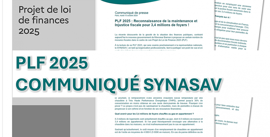 PROJET DE LOI DE FINANCE 2025 - COMMUNIQUÉ DU SYNASAV