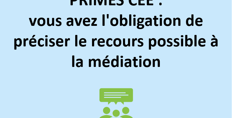 Primes CEE : vous avez l'obligation de préciser le recours possible à la médiation