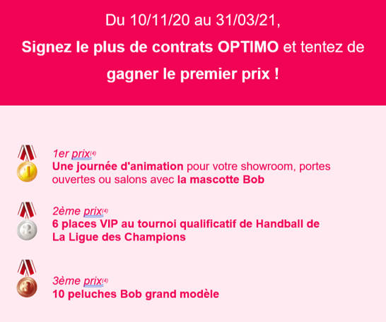 proposez OPTIMO avec à la clé pour vous, de nombreux prix à gagner et des clients satisfaits !