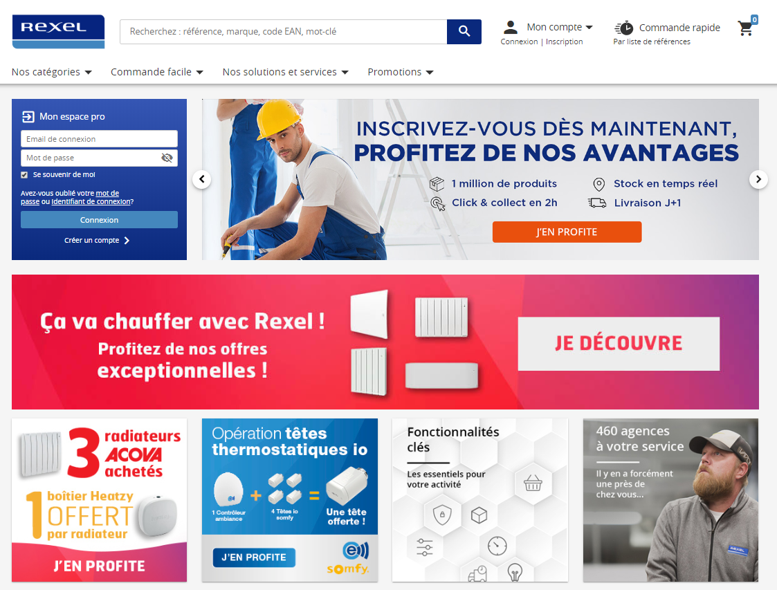 Rexel accompagne ses clients électriciens, plombiers chauffagistes, constructeurs de maisons individuelles, prestataires de services, spécialistes du CVC dans le résidentiel, le tertiaire et l’industrie en leur offrant une gamme adaptée et évolutive de produits et services de maîtrise de l’énergie pour la construction, la rénovation, la production et la maintenance.
