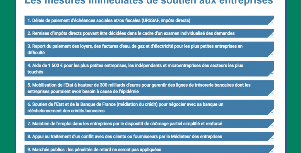TOUTES LES MESURES IMMÉDIATES DE SOUTIEN AUX ENTREPRISES