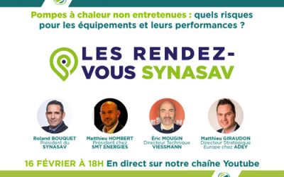 RETROUVEZ LE REPLAY DES #RDV SYNASAV : POMPES À CHALEUR NON ENTRETENUES : QUELS RISQUES POUR LES ÉQUIPEMENTS ET LEURS PERFORMANCES ?