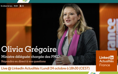 La rédaction de[nbsp]Linkedin Actualités[nbsp]recevra lundi 24 octobre à 18h30[nbsp]Olivia Grégoire, Ministre Déléguée Chargée des …