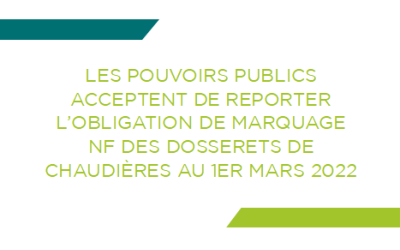 Les pouvoirs publics acceptent de reporter l’obligation de marquage NF des dosserets de chaudières au 1er mars 2022.