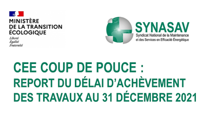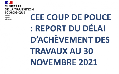CEE COUP DE POUCE, OBTENTION DU REPORT DU DÉLAI D’ACHÈVEMENT DES TRAVAUX AU 31 DECEMBRE 2021