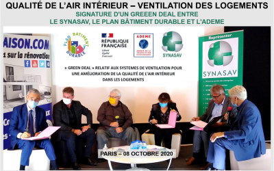 QUALITÉ DE L’AIR INTÉRIEUR – VENTILATION DES LOGEMENTS : signature d'un Greeen deal entre le SYNASAV, le Plan bâtiment durable et l'ADEME