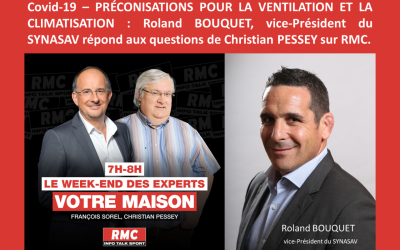 Covid-19 – PRÉCONISATIONS POUR LA VENTILATION ET LA CLIMATISATION : Roland BOUQUET, vice-Président du SYNASAV répond aux questions de Christian PESSEY sur RMC.