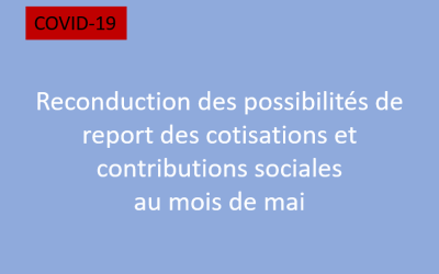 Covid-19 - Reconduction des possibilités de report des cotisations et contributions sociales au mois de mai