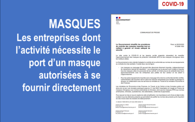 Masques - Le Gouvernement autorise toutes les entreprises dont l’activité nécessite le port d’un masque chirurgical ou de type FFP2/FFP3 de se fournir directement auprès de producteurs étrangers