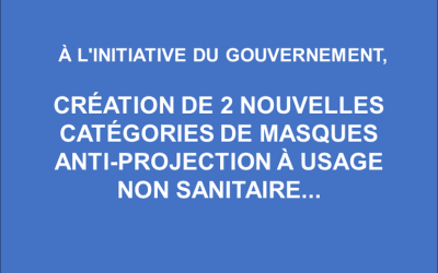 À l'initiative du Gouvernement, création de 2 nouvelles catégories de masques anti-projection à usage non sanitaire...