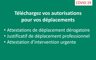 COVID-19 - En téléchargement : Attestation de déplacement dérogatoire - Justificatif de déplacement professionnel - Attestation SYNASAV d'intervention en urgence