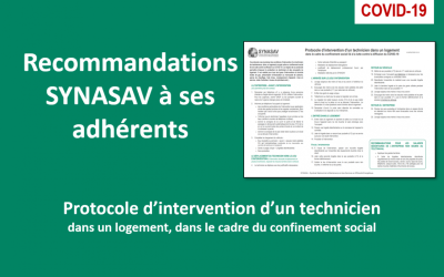 Covid-19 - Recommandations officielles du SYNASAV à ses adhérents - Protocole d'intervention des techniciens dans les logements.