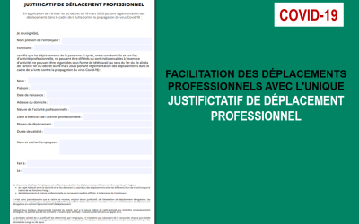 COVID-19 - Facilitation des déplacements professionnels avec l'unique JUSTIFICATIF DE DÉPLACEMENT PROFESSIONNEL (à télécharger)