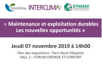 Maintenance et exploitation durables : les nouvelles opportunités - Conférence UNICLIMA / SYNASAV le 07 novembre sur INTERCLIMA 2019